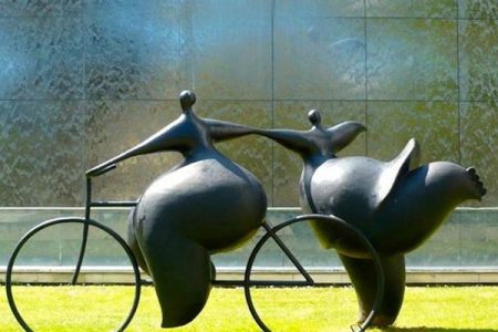 Please let us take a closer look at this bronze Grosse femme sculpture. We could clearly see that a woman with a fat body is riding a bicycle, and another woman with the same body shape is dancing. Obviously, these are two abstract sculptures, and we couldn’t see their expressions. But from the overall structure, we could feel that they are so happy. I believe you couldn’t help but dance happily with this sculpture.