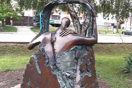 This bronze western abstract status called emptiness shows the image of a family member in a static state. The child is lying on his parents’ knees, and the image of a family of three looks so bleak. This group of figure sculptures strongly evokes our feelings of missing our parents. It alludes to a kind of loneliness of parents in old age.