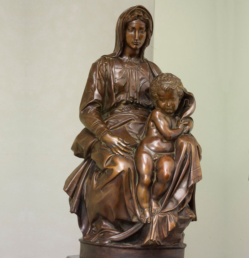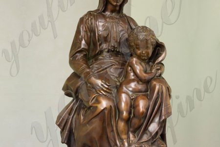 The Madonna of Bruges is a marble sculpture by Michelangelo. The statue depicts the Virgin Mary seated holding the child Jesus. The work was the first sculpture Michelangelo left Italy during his lifetime. YouFine has 40 years of casting experience and could provide client with high-quality Madonna of Bruges statues cast in bronze.