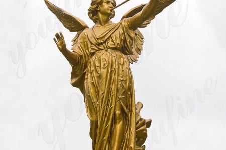 The image of the angel Gabriel is that of a trumpet in hand blowing to a distance. Spread your huge wings. He looked solemn and joyful, and seemed to be sending glad tidings to the people from afar. This garden bronze angel sculpture can be customized. In Western mythology the angelic figure occupies a large part of the world and is divided into different levels, representing different identities. Among them this trumpet-blowing angel is the one who brings good news to the Virgin Mary.