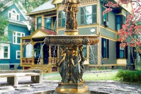 This is an unparalleled antique bronze fountain finished in multi-colors patinas. It’s reminding people to think of the finest Victorian garden art. The bottom four girls hold urns in a different pose, and the top four girls are like columns to hold the gazebo cap. The water flows from the snake’s mouth to the big bowl, then from the lion’s head to the big basin, the whole antique bronze fountain is very comfortable.