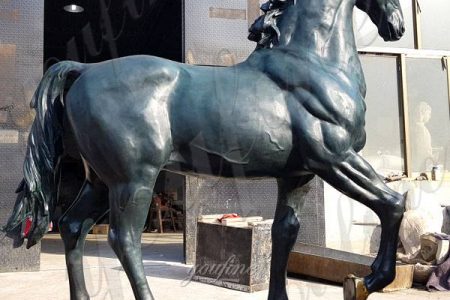 This large size bronze horse statue is recognized as the most beautiful in the world. The graceful neck, high raised tail, and small face represent the grace of the horse. This statue captures the exquisite features of bronze carving with superb artistic skills.