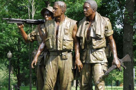 Three soldiers (also known as the Armed Forces) are bronze statues commemorating the Vietnam War at the National Mall in Washington, D.C.
