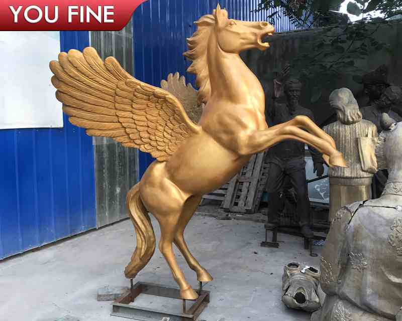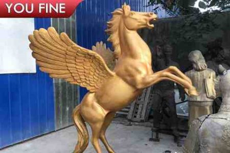The Pegasus statue is a popular one among animal statues. Every year we cast a lot of Pegasus statues for our customers. This Golden Bronze Pegasus Horse Statue is one of the best-selling products in our bronze sculptures. The entire sculpture was cast from fine bronze. We use a traditional hot casting process. This process better guarantees the details of the statue. Therefore, our statues are very popular with customers.
