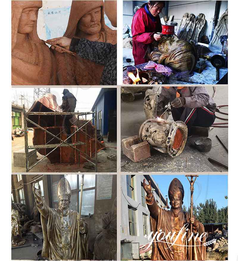 The artists of the YouFine factory have received high knowledge education and artistic influence. They are devout Catholics and have a deep affection for Catholic sculptures. They visit churches and priests all over the world. Moreover, they collect a large number of sculpture materials every time and they travel to broaden their design ideas. So we have very many types of Catholic bronze sculptures.