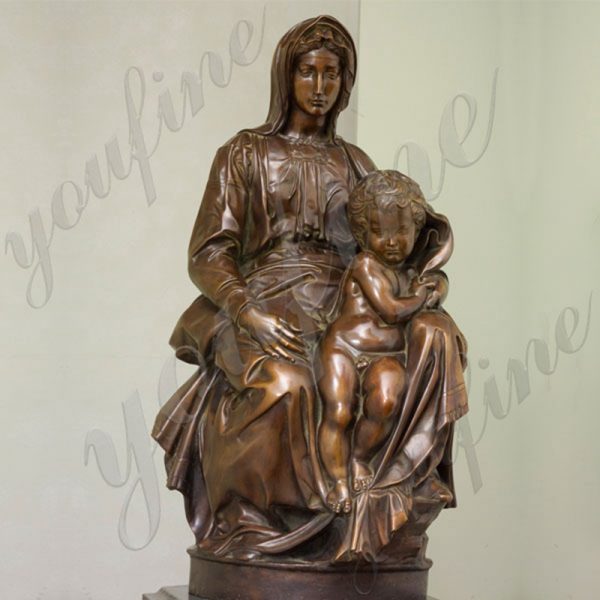 The Madonna of Bruges is a marble sculpture by Michelangelo. The statue depicts the Virgin Mary seated holding the child Jesus. The work was the first sculpture Michelangelo left Italy during his lifetime. YouFine has 40 years of casting experience and could provide client with high-quality Madonna of Bruges statues cast in bronze.
