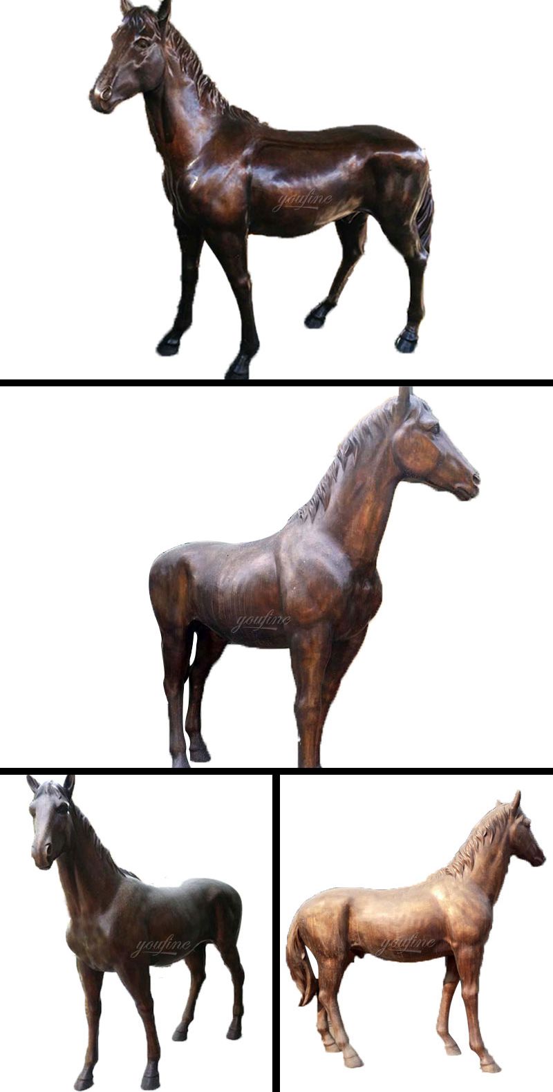 You Fine Art Sculpture can not only provide bronze horse statue, but also provide marble sculptures, iron sculptures and stainless steel sculptures. We can also provide customized services. If you would like any information about sculpture, please feel free to contact us.