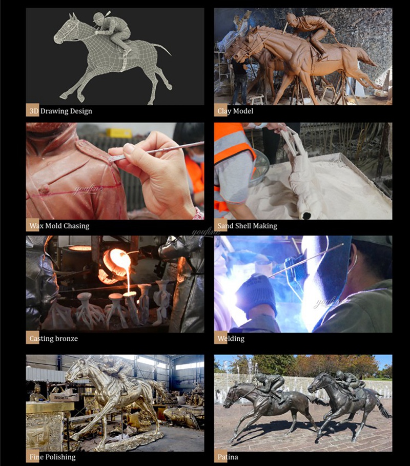 Each of YouFine’s bronze sculptures is cast using the lost wax method in at least 33 steps, with each step strictly controlled by different professional artists. 40 years of casting experience has enabled YouFine to form a complete set of mature casting processes and master advanced technique and equipment.