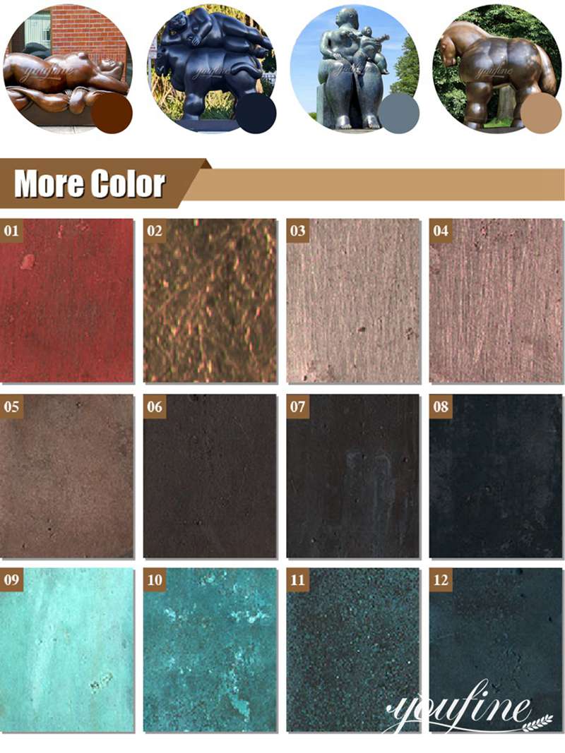 Artists at the YouFine factory used chemical colorants to color the bronze Jean-Louis statue. This approach ensures that the color of our bronze Louis Toutain statue sculpture becomes more and more natural over time. In particular, depending on the chemical combination, you would have bronze fat man sculptures in different colors. Also, our artists could adjust the color you want for you. There is no doubt that the color of your Bronze Fat Man sculpture would be unique, your own color.