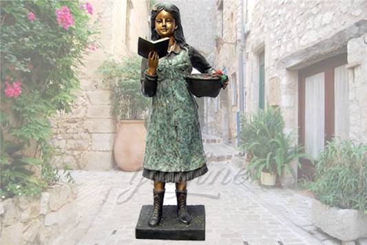 Life size outdoor garden bronze girl reading statue
