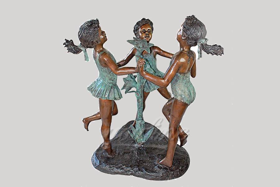 Life size playing casting bronze children sculptures with flowers