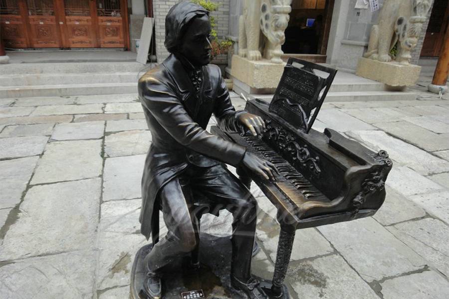 Life size classical street sitting bronze pianist sculptures