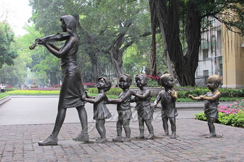 Lovely outdoor life size bronze teaching group sculptures with violin