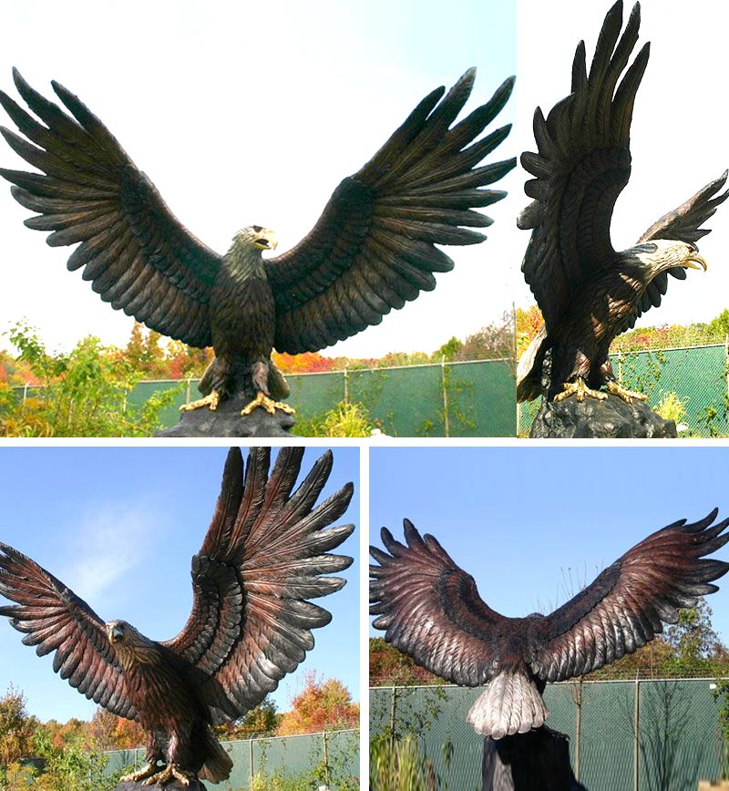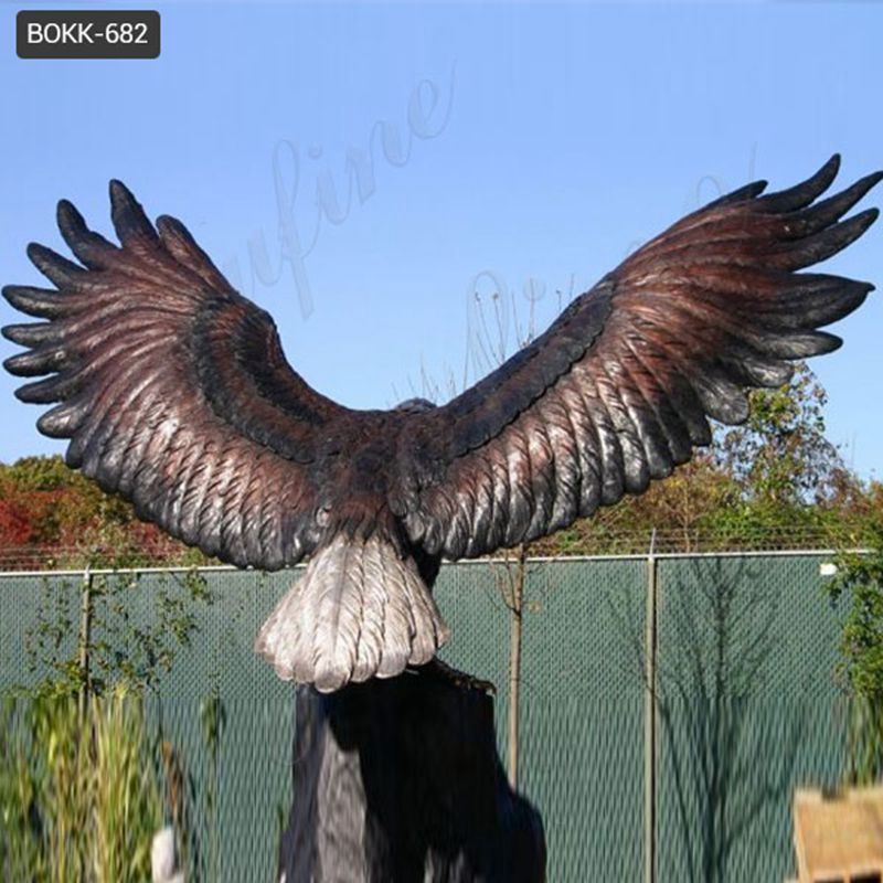 This statue is an eagle that stretches its wings and looks sharply to the side,and it’s a Life Size Bronze Eagle Statue.You can also customize other sizes.You Fine art sculpture has perfect customized service.The entire statue is in reddish-brown and black finishes,closer to the color of the real eagle’s feathers.Therefore, the Life Size Bronze Eagle Statue looks lifelike and very realistic.