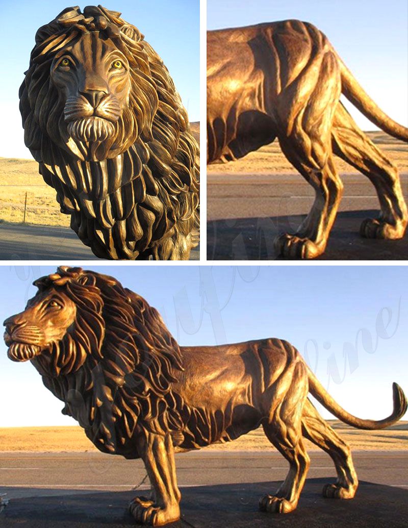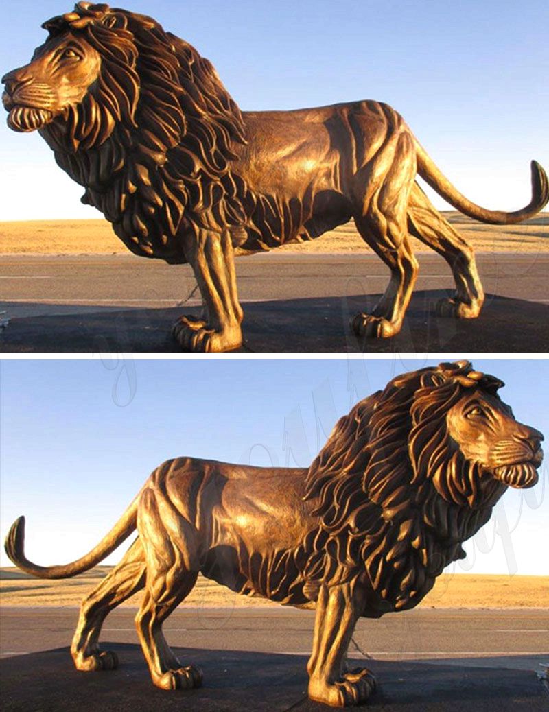 The Bronze Raising Head Lion Statue is painted in dark gold-brown.The entire lion statue itself looks bright and has excellent gloss.We use the good quality bronze in the production process and all bronze statues are carefully cast by masters with many years of experience.So the quality of our sculptures can definitely be guaranteed.