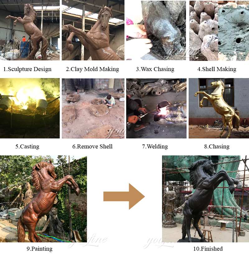 We have a team who only do the animal sculpture and they study many animals a lot and some of our masters raise a lot of animals in order to make a good shape of the sculptures. Some masters often go to the zoo or see many animal videos on TV and study them so that makes the sculptures more vivid. So that is why we could make the bronze horse statue so attractive.
