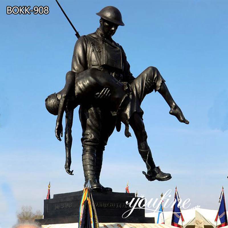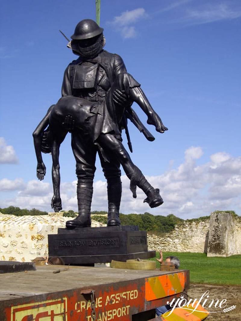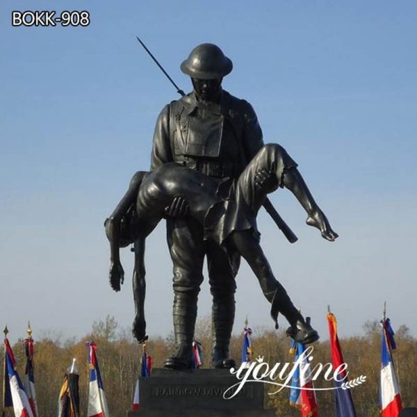 This bronze military soldier statue commemorates the regiment’s service in Europe during World War I as part of the 42nd Infantry Regiment which is also widely known as the Rainbow Division. The statue created by British artist James Butler depicts the war soldier wearing a neat military suit and having a man with broken clothes in his arms. The man is his comrade who lost lives in the war. He stares at his comrade with a mournful expression. People who saw this sculpture could not help to lament the cruelty of war and the difficulty of peace. Therefore this bronze statue of an army soldier has great commemorative significance. YouFine has worked in bronze sculpture for around 40 years and has the ability to produce bronze sculptures that are highly restored to the original sculptures.