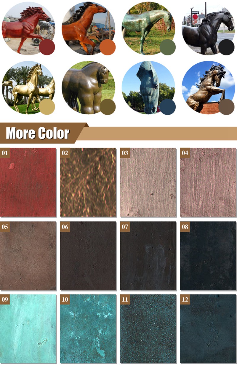 YouFine provides color customization services. Professional coloring artists will use patina technique to deliver beautiful colors. Different customers have different needs for life size bronze horse statue. You only need to tell the artist your color expectations, and they can concoct various special colors. Most importantly, the color tone of YouFine’s bronze horse statue is light and thin, not easy to fall off, and will become more and more natural as time goes by.